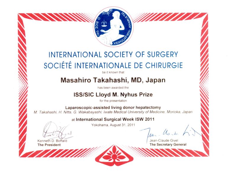 International Surgical Week ISW(国際外科学会)にて最優秀発表賞受賞 - 2012年